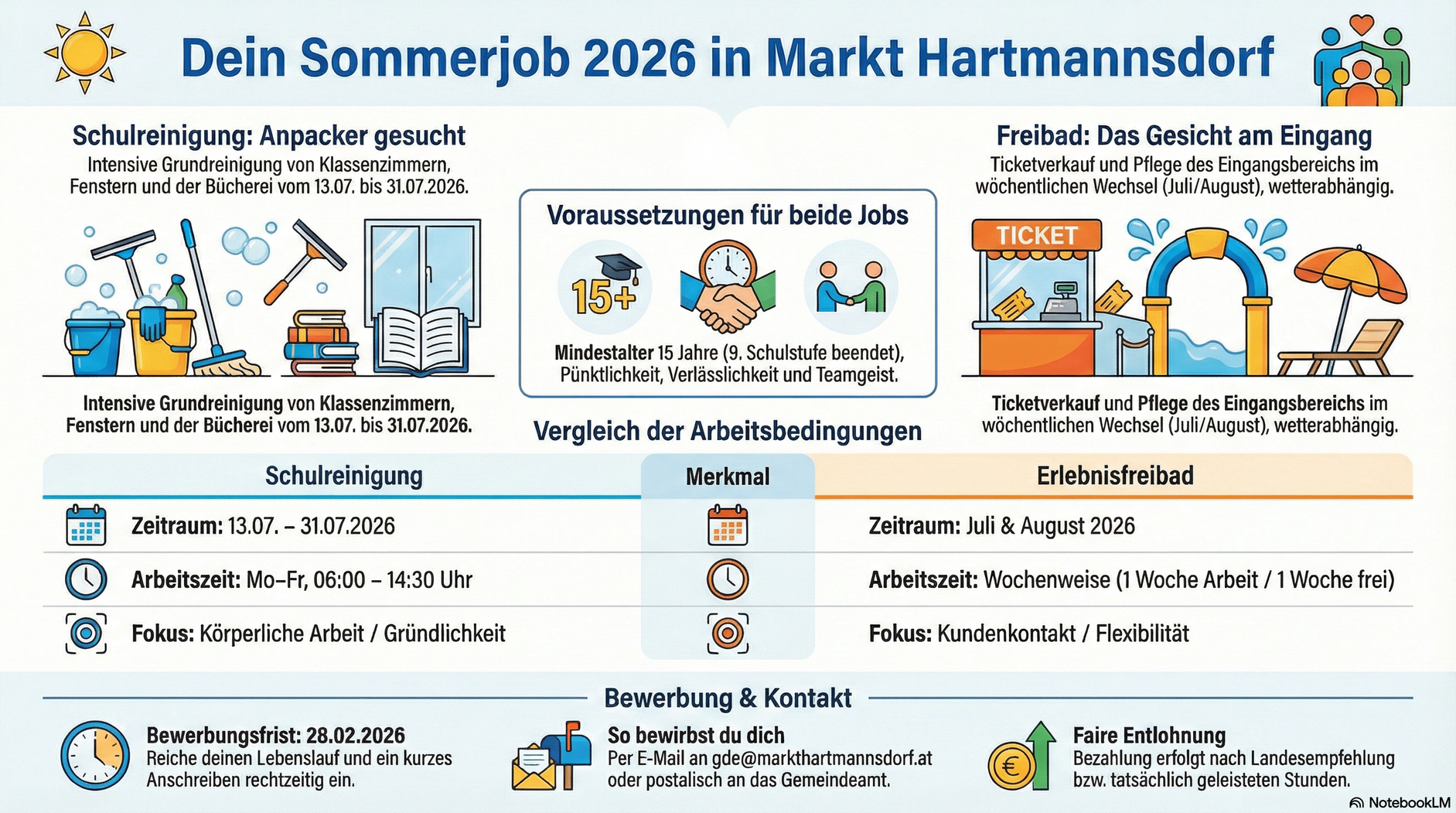 Die Marktgemeinde Markt Hartmannsdorf bietet folgende Sommerjobs für 2026 an:
